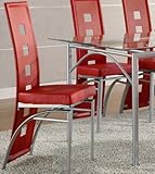 Set of 2 Dining Chairs Red Leather Like Metal Legs Matte Silver Finish